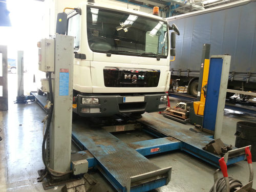 Ravaglioli 20000kg (20 ton) commercial vehicle lift in stock, complete with 2 air operated 13500kg jacking beams. 8 metre long bed.
